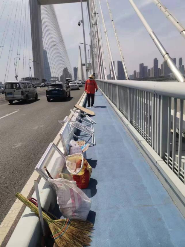 橋面環(huán)衛(wèi)工人們的工作“家當”