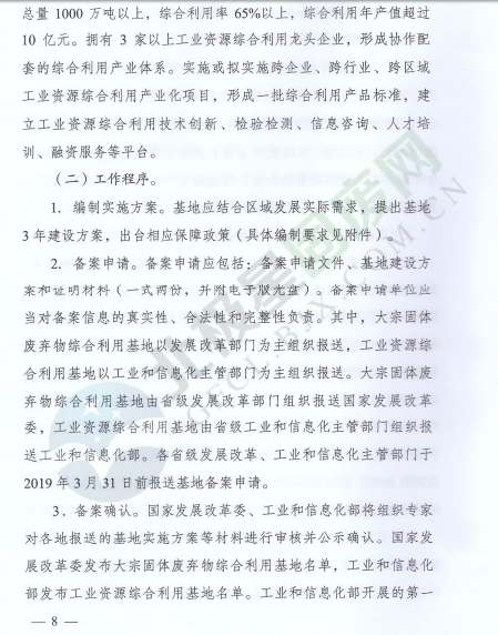 為落實(shí)《中華人民共和國(guó)經(jīng)濟(jì)和社會(huì)發(fā)展第十三個(gè)五年規(guī)劃綱要》《循環(huán)發(fā)展引領(lǐng)計(jì)劃》和《工業(yè)綠色發(fā)展規(guī)劃》,促進(jìn)產(chǎn)業(yè)集聚,提高資源綜合利用水平,推動(dòng)資源綜合利用產(chǎn)業(yè)高質(zhì)量發(fā)展,近日,國(guó)家發(fā)展改革委辦公廳和工業(yè)和信息化部辦公廳印發(fā)了關(guān)于推進(jìn)大宗固體廢棄物綜合利用產(chǎn)業(yè)集聚發(fā)展的通知。全文如下: