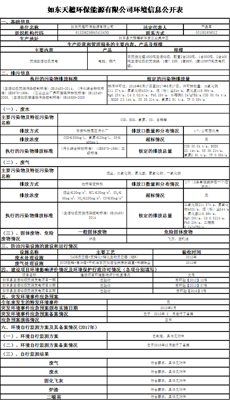 如東天楹環(huán)保能源有限公司2017年環(huán)境信息公開(kāi)表